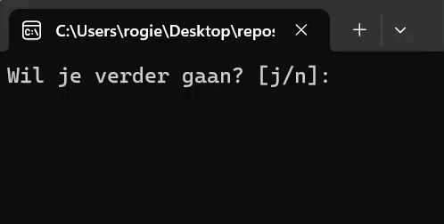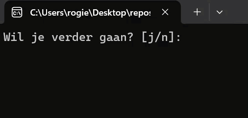 Console.Write("Wil je verder gaan? [j/n]: ");
