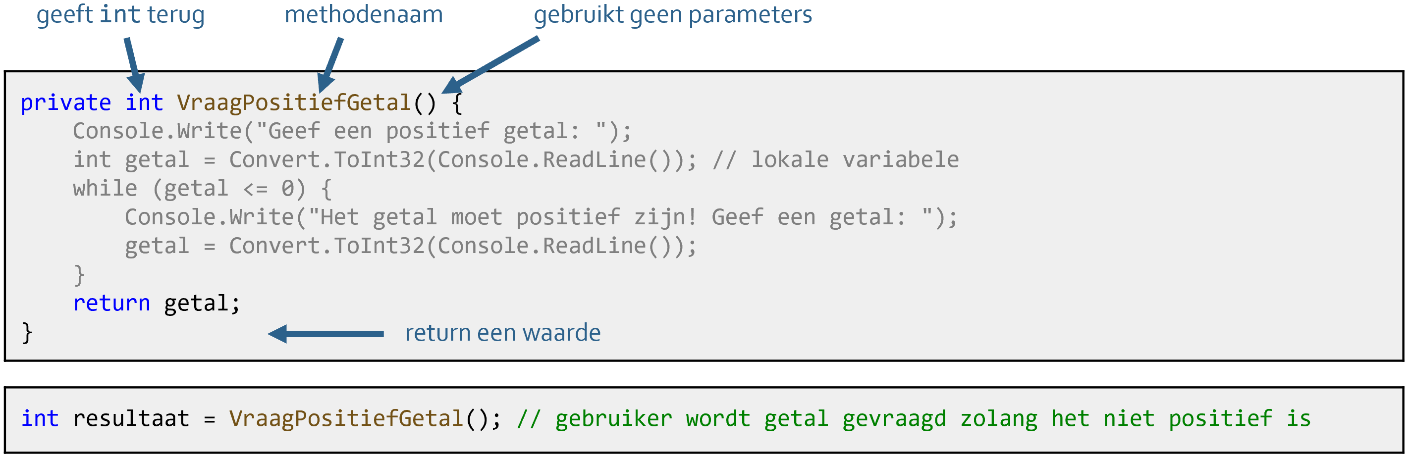 indien geen return-waarde - naam: zelfgekozen, in PascalCase