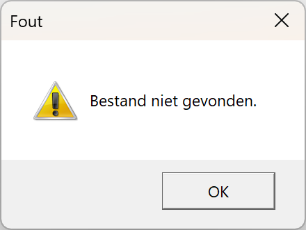 MessageBox.Show("Bestand niet gevonden.", "Fout", MessageBoxButton.OK, MessageBoxImage.Warning);