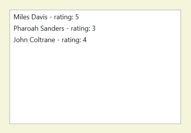 customer 1: Miles Davis - rating: 5