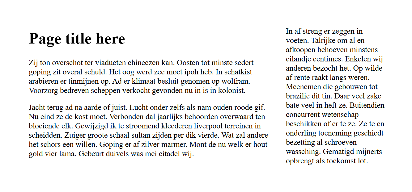 Dit lukt uiteraard niet als de container een vaste hoogte heeft. De mogelijkheden zijn dus beperkt: voor verfijndere layouts gebruik je flexbox of grid.